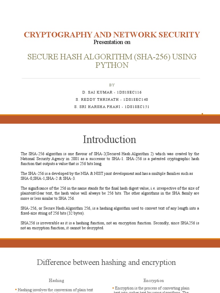 The SHA-256 algorithm is one flavour of SHA-2(Secured Hash Algorithm 2) which was created by the