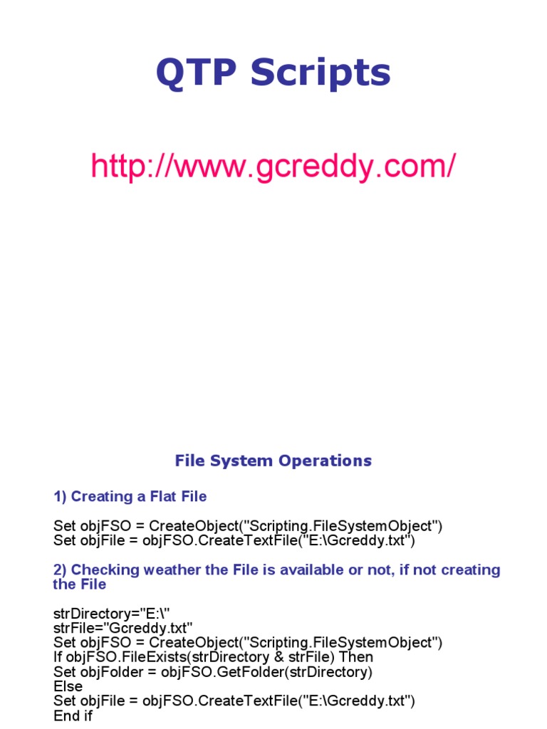 Set objFile = objFSO.CreateTextFile("E:\Gcreddy.txt")