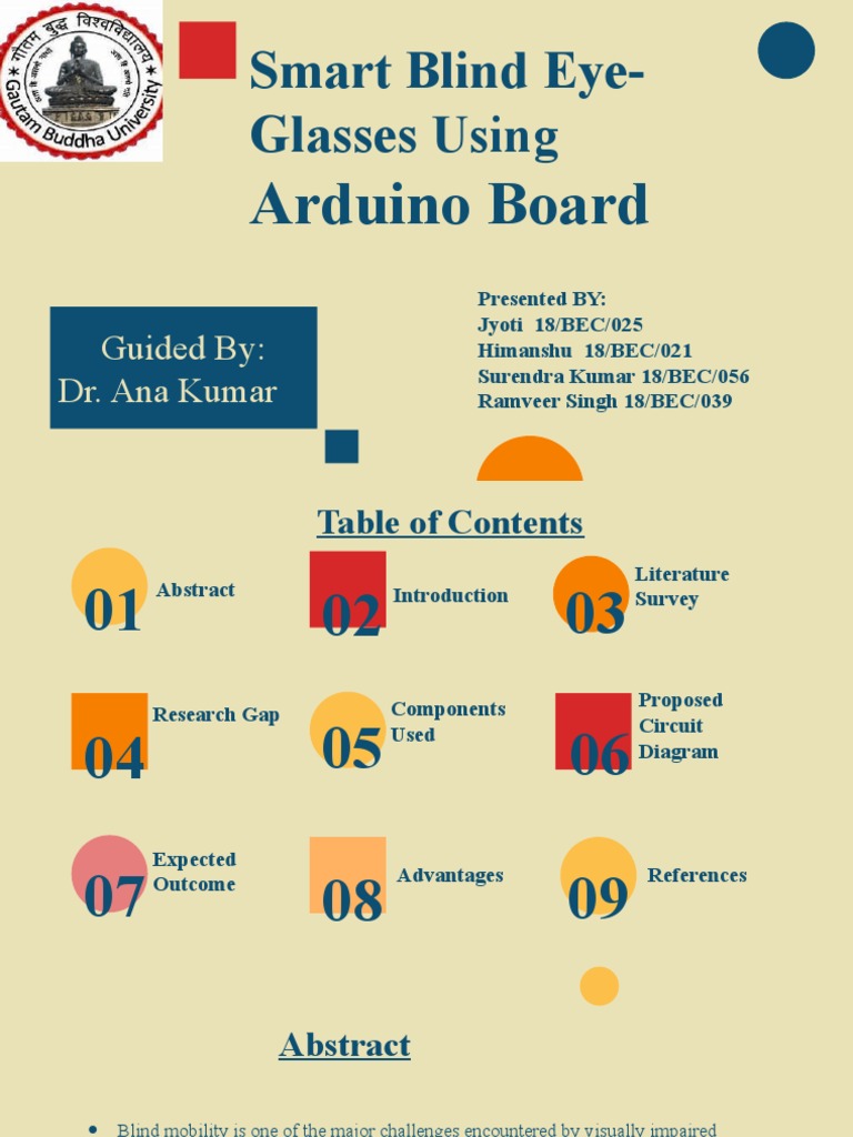 ● The third eye for Blind project is an innovation which helps the blind person to move