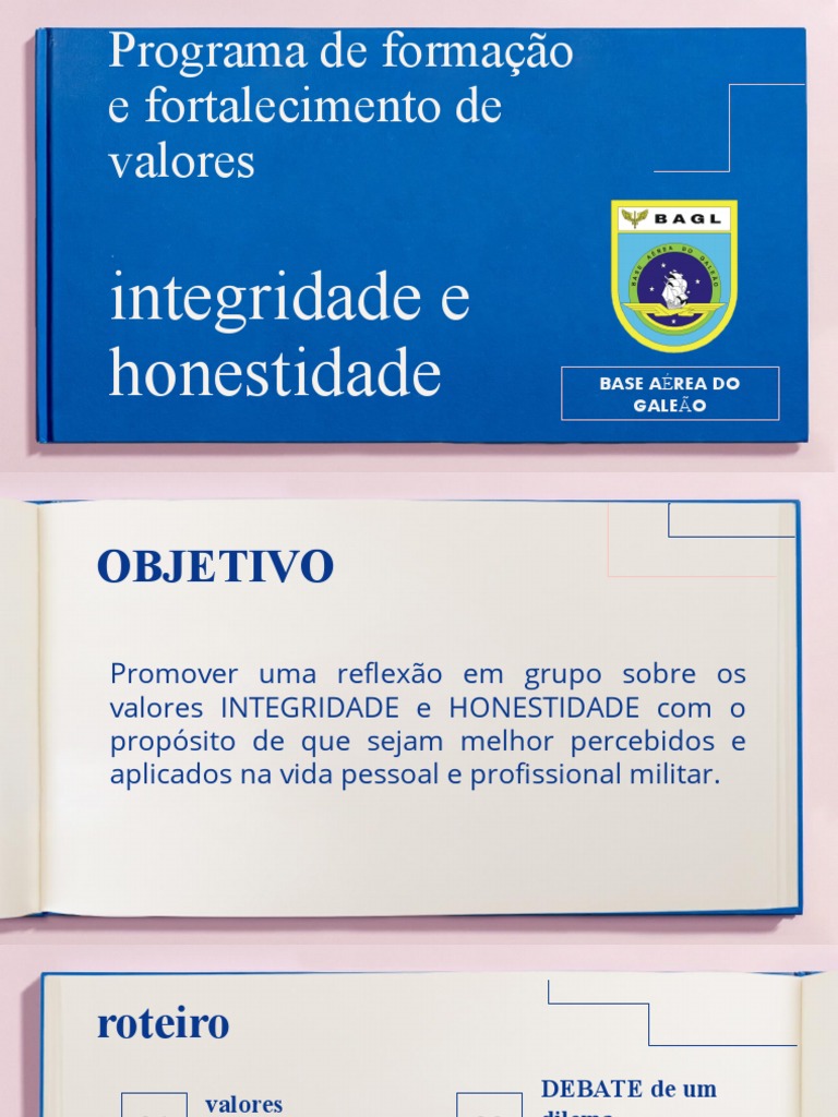 valores INTEGRIDADE e HONESTIDADE com o