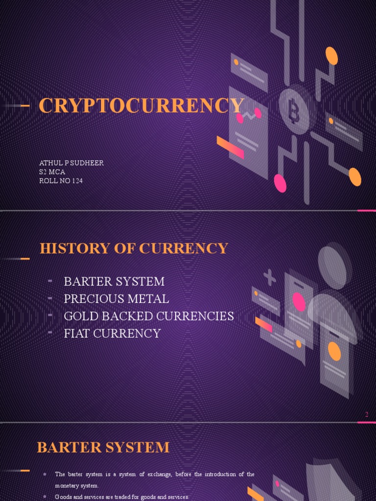 ╸ A cryptocurrency is a digital payment system that does not rely on bank to