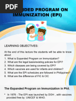 The Expanded Program on Immunization (EPI) in the Philippines began in July 1979. And, in 1986, made a response to the Universal Child Immunization goal. The Expanded Program on Immunization is one of the DOH Programs that has already been institutionalized and adopted by all LGUs in the region. Its objective is to reduce infant mortality and morbidity through decreasing the prevalence of six (6) immunizable diseases (TB, diphtheria, pertussis, tetanus, polio and measles)