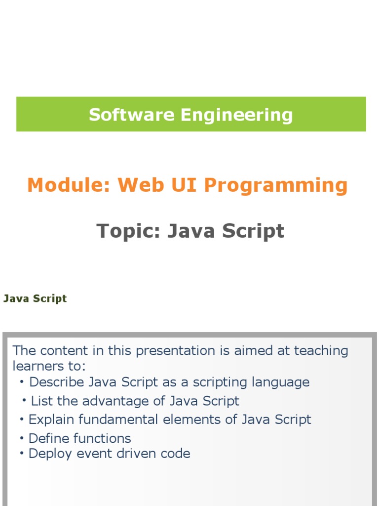 • Explain fundamental elements of Java Script