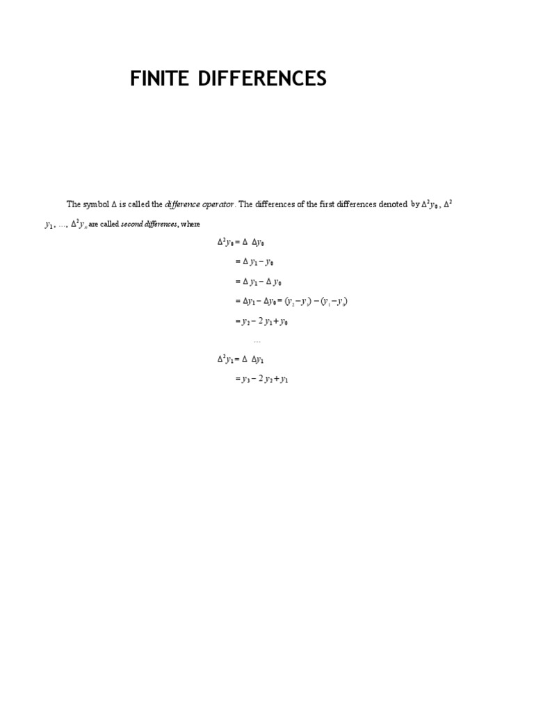 The symbol is called the difference operator. The differences of the first differences denoted by 2 y0 , 2