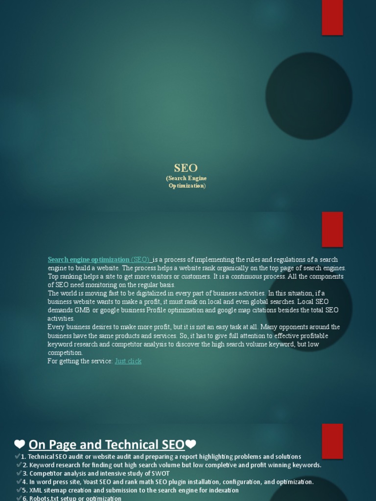 Search engine optimization (SEO) is a process of implementing the rules and regulations of a search