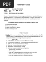 Fullness is done to shape a garment. It also aids in garment fitting. It adds