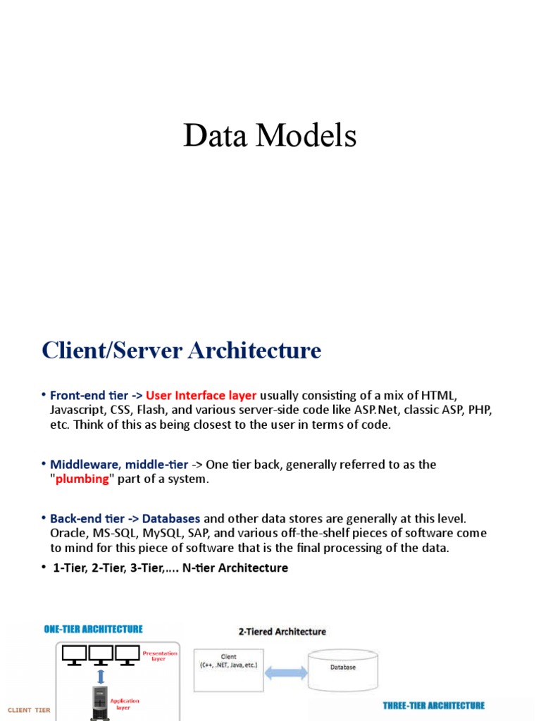 • 1-Tier, 2-Tier, 3-Tier,…. N-tier Architecture