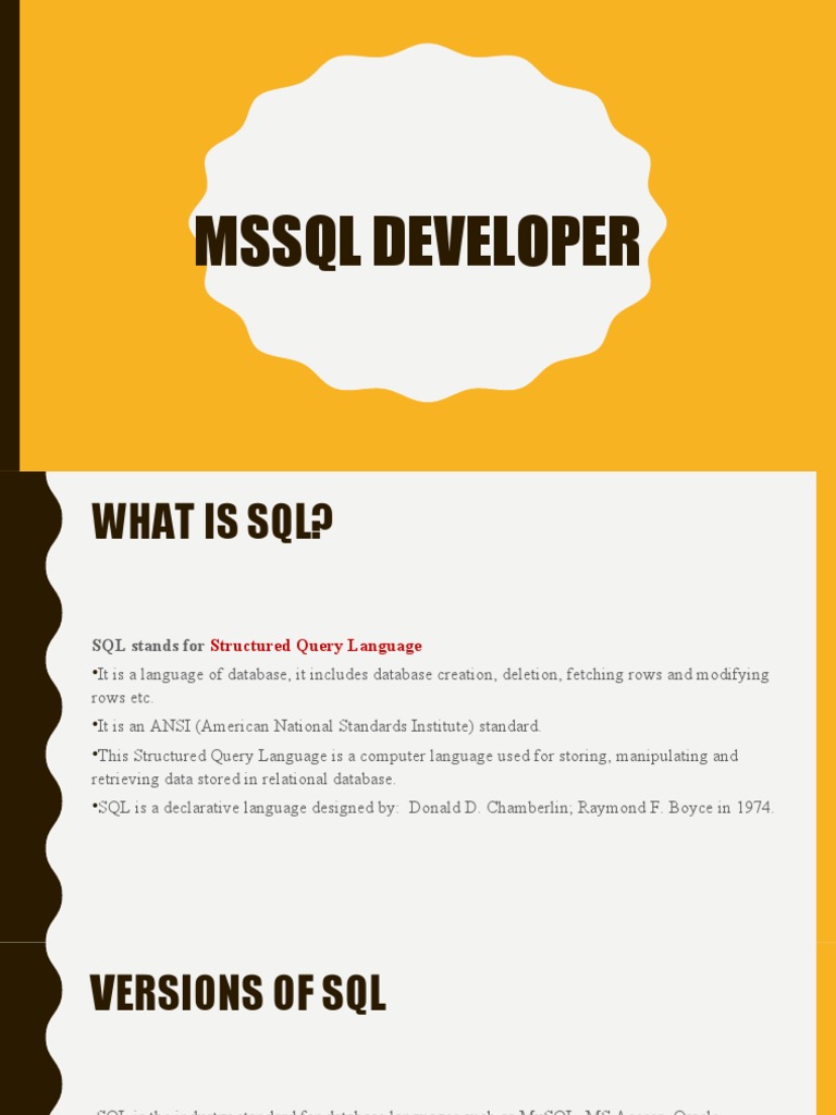 V. DQL: It is used to fetch or retrieve data in a database. Example: SELECT Statement