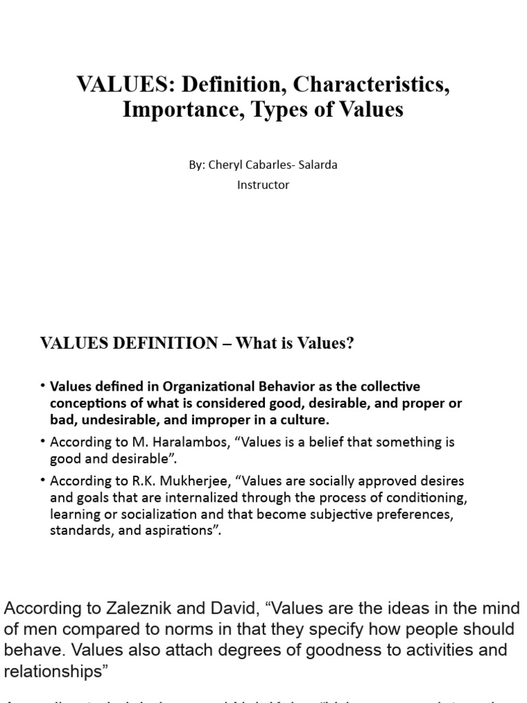 VALUES: Definition, Characteristics,
