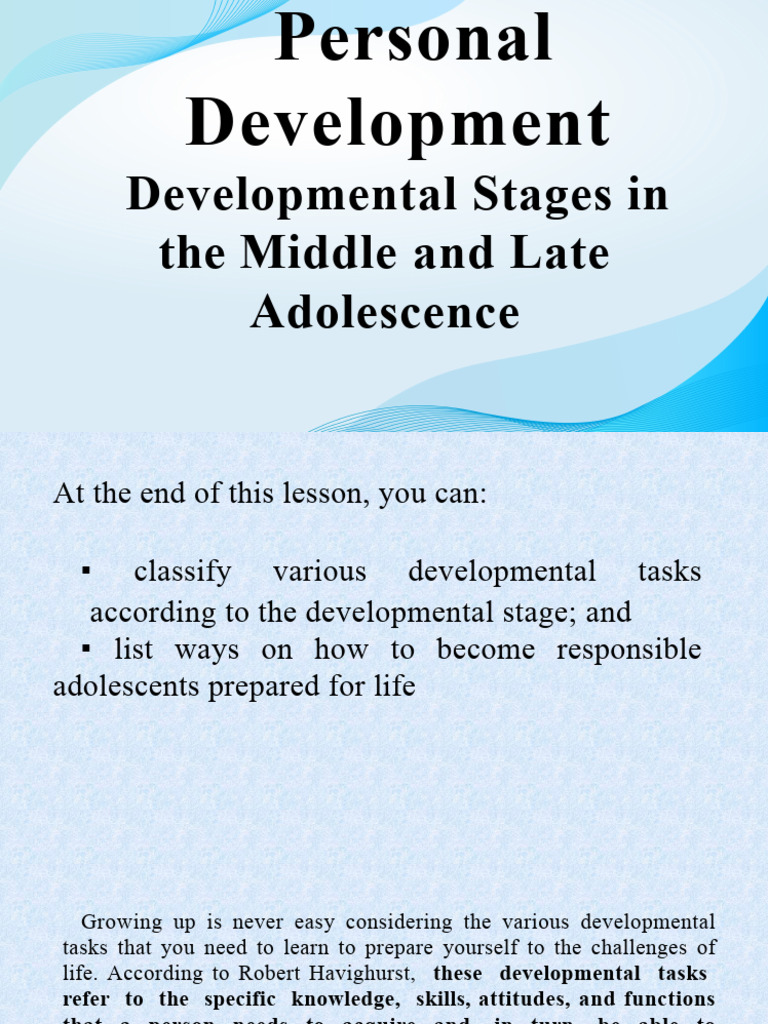 demonstrate at certain periods in his or her life. Knowing your tasks
