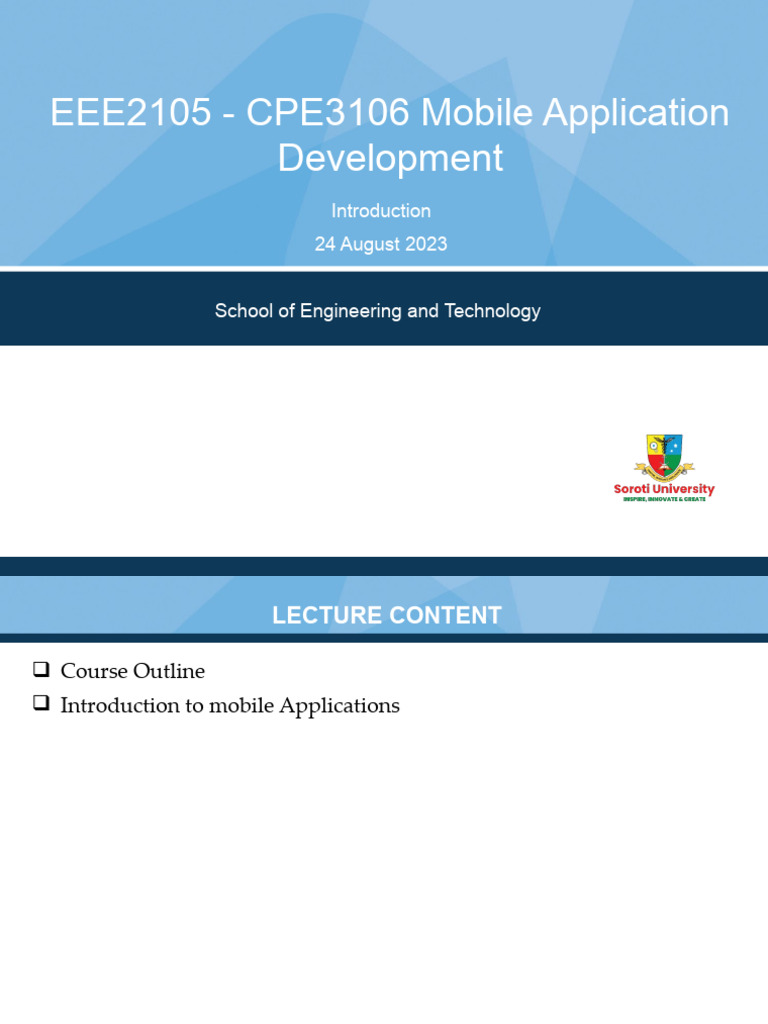 This Course introduces all aspects of Android, iOS, Blackberry and Windows