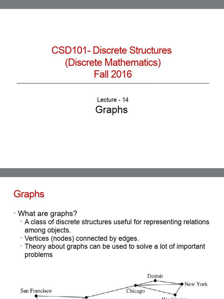 • A graph G = (V, E) is defined by a set of vertices V , and a