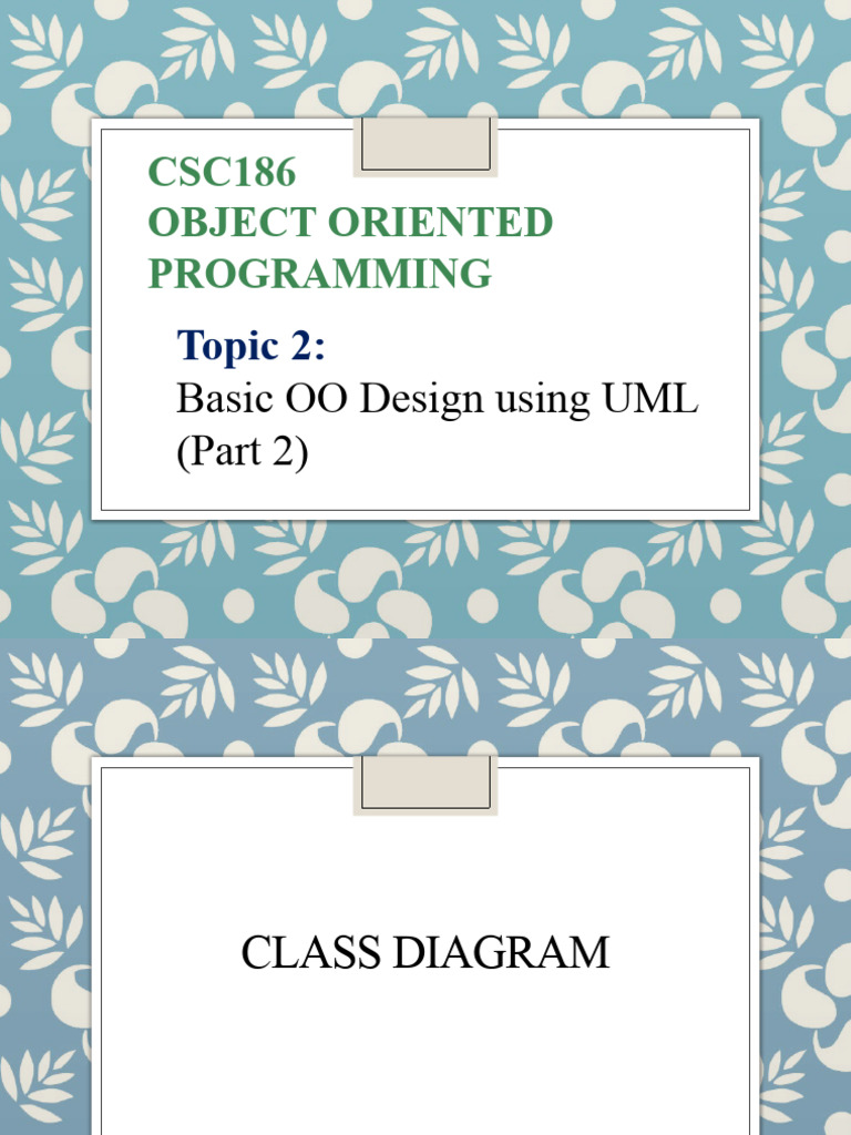 ◦ A class is a collection of similar (attributes, operations, relationships) objects.