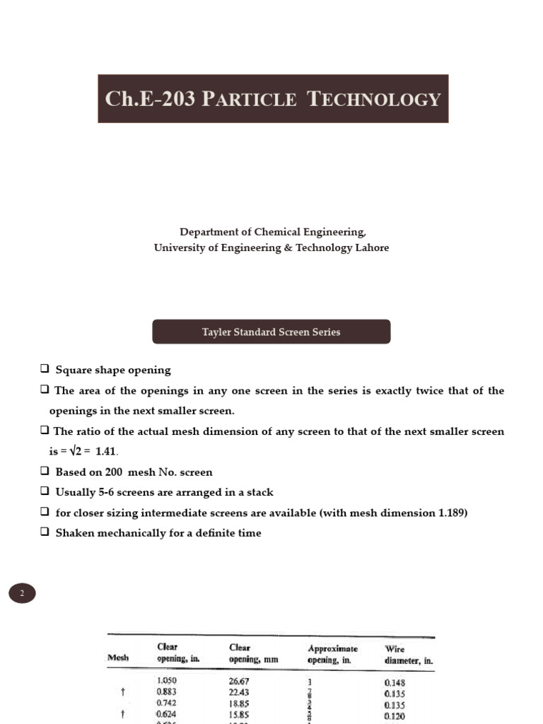Screen analysis is carried out using number of screens so that aperture size reduces for