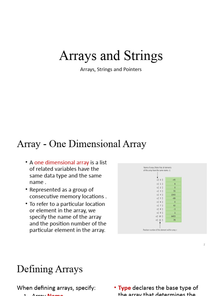 Arrays, Strings and Pointers