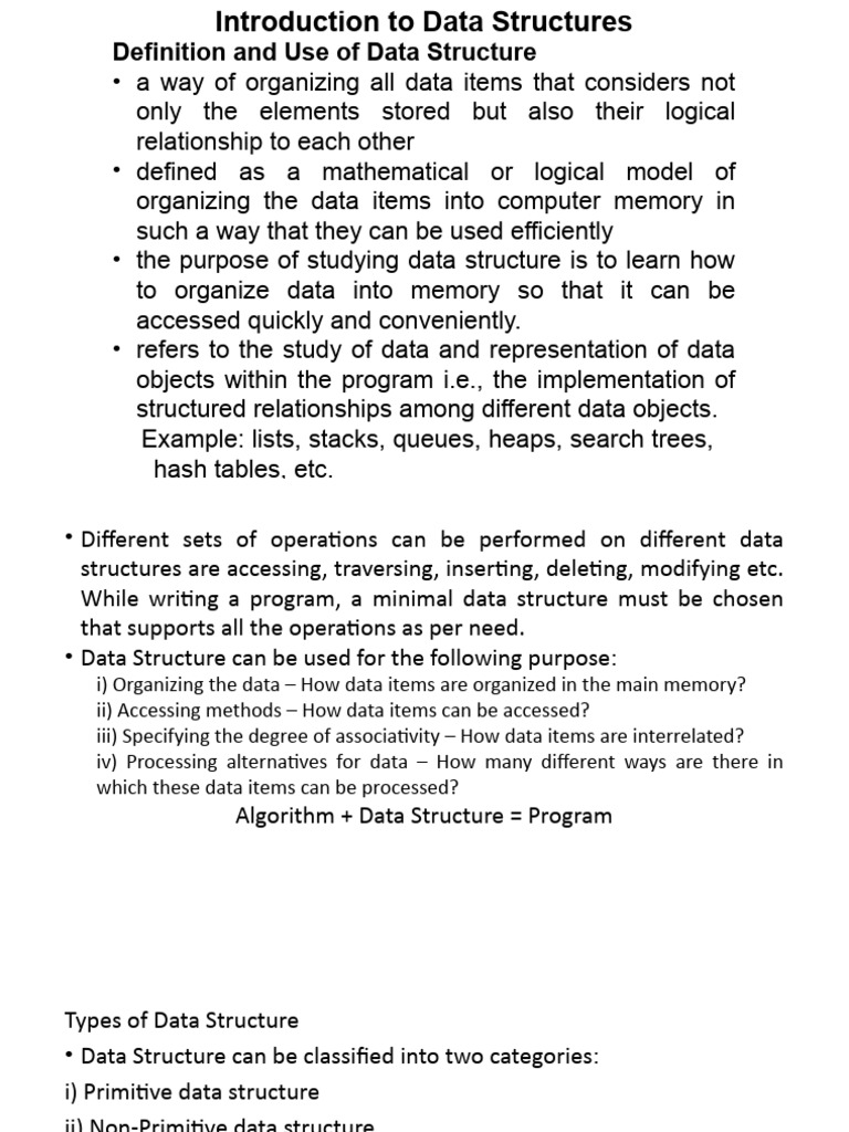 structures are accessing, traversing, inserting, deleting, modifying etc.