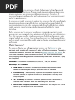 Electronic commerce, or e-commerce refers to buying and selling goods and services over the