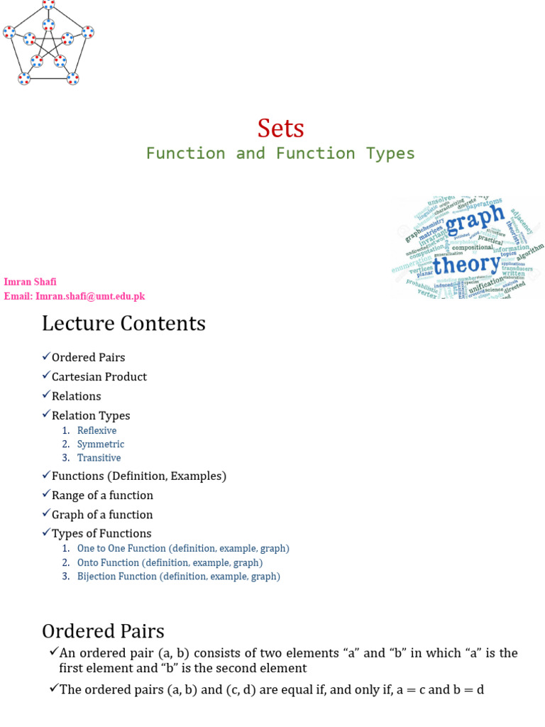 An ordered pair (a, b) consists of two elements “a” and “b” in which “a” is the