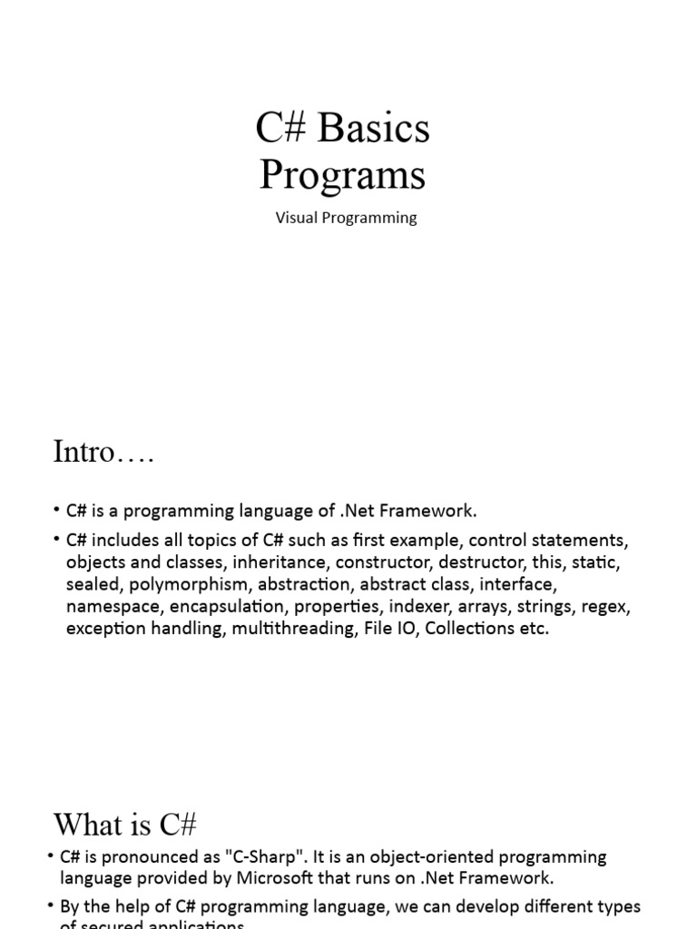 • C# is pronounced as "C-Sharp". It is an object-oriented programming