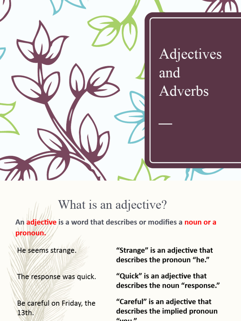 Use an Adjective to Modify a Use an Adverb to Modify a verb:
