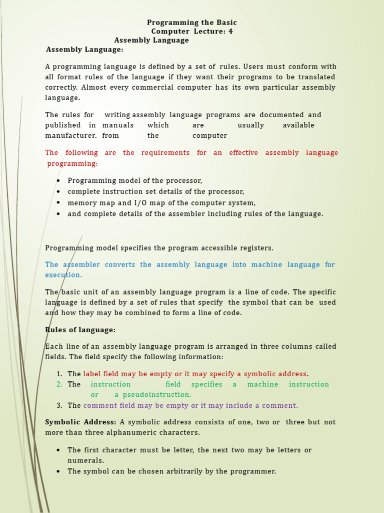 The rules for writing assembly language programs are documented and