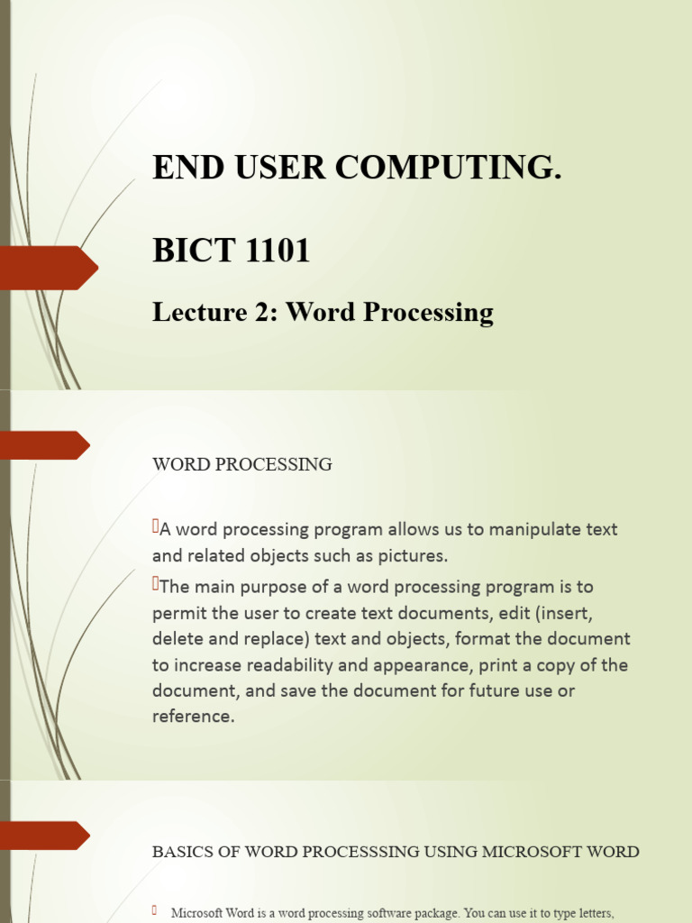 BASICS OF WORD PROCESSSING USING MICROSOFT WORD