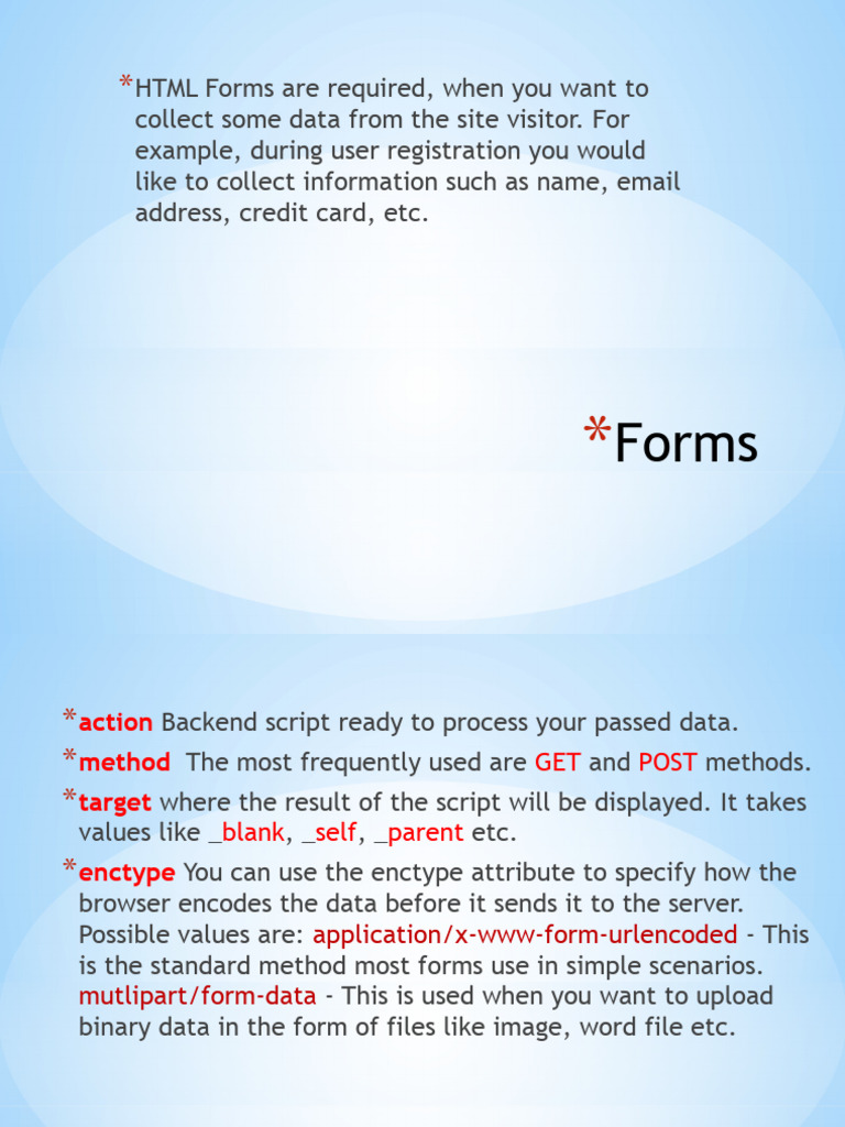 * enctype You can use the enctype attribute to specify how the
