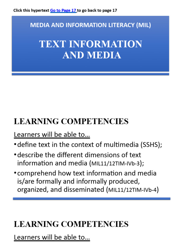 • comprehend how text information and media