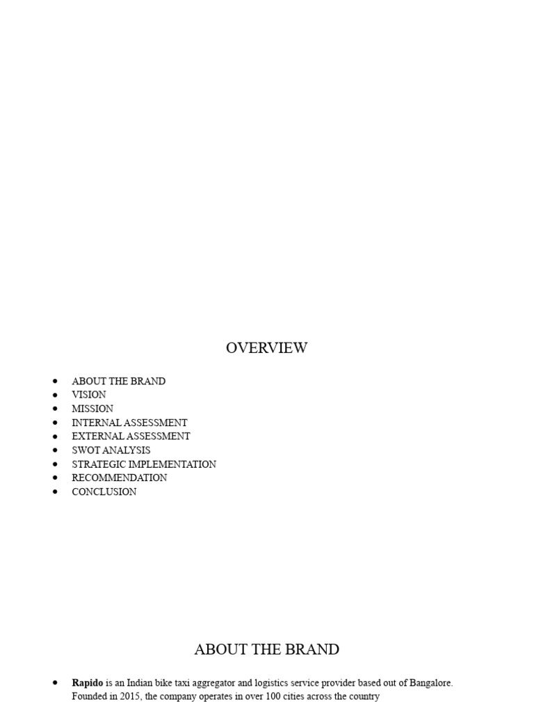 strategy. For Rapido, these objectives could include expanding market share, increasing customer