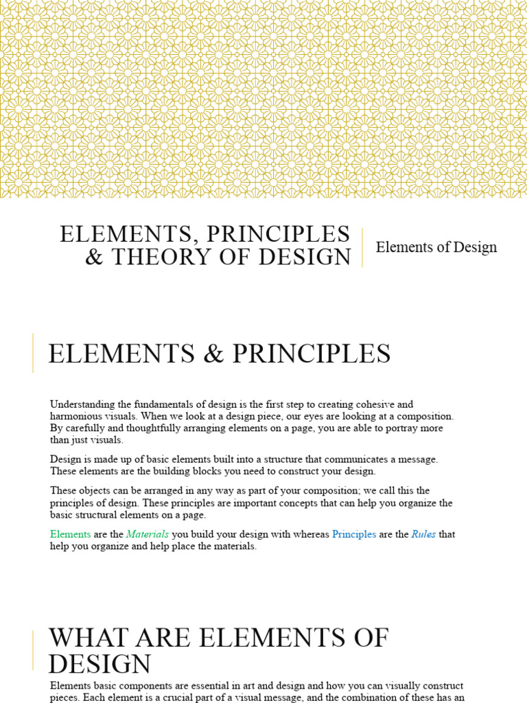 ELEMENTS, PRINCIPLES Elements of Design