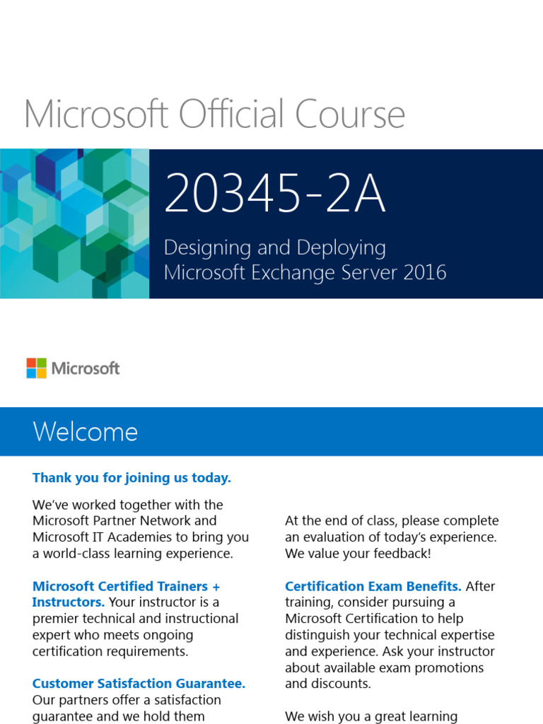 • Plan and deploy Exchange Server 2016 Mailbox services