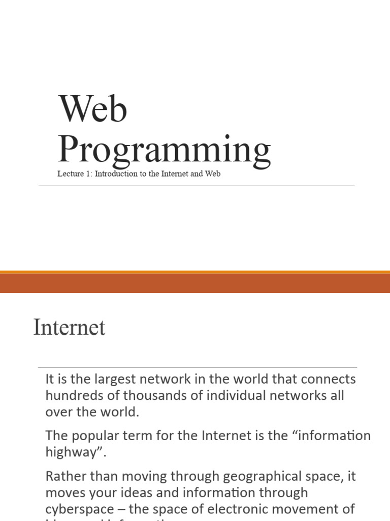 Lecture 1: Introduction to the Internet and Web