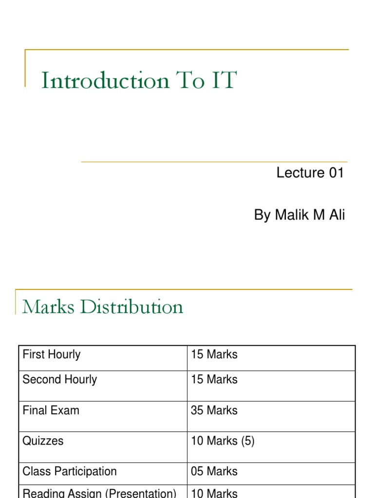 First Hourly Second Hourly Final Exam 15 Marks 15 Marks 35 Marks