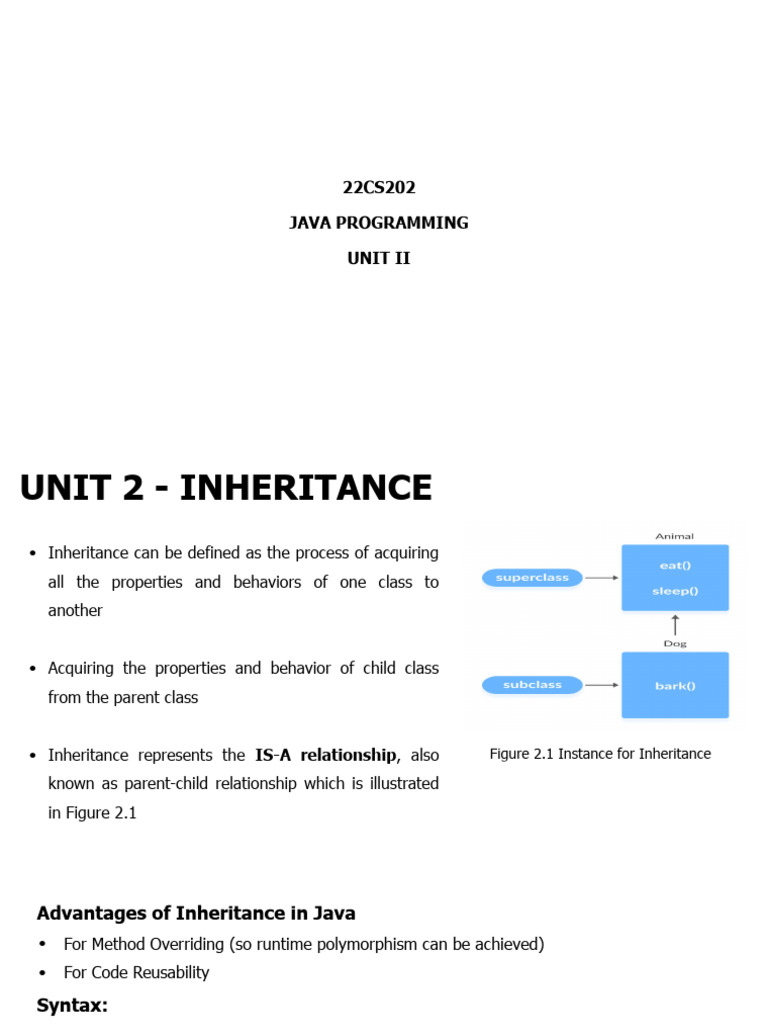 • Inheritance represents the IS-A relationship, also Figure 2.1 Instance for Inheritance