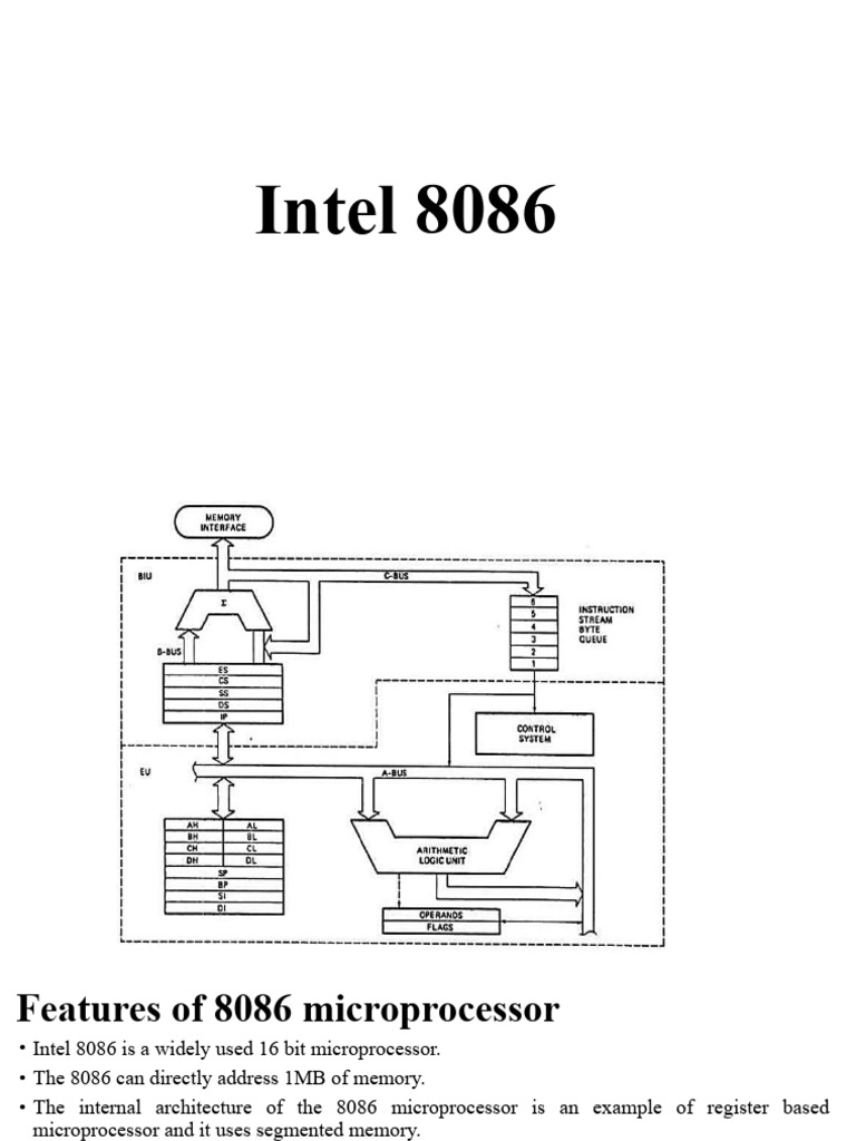 • Intel 8086 is a widely used 16 bit microprocessor.