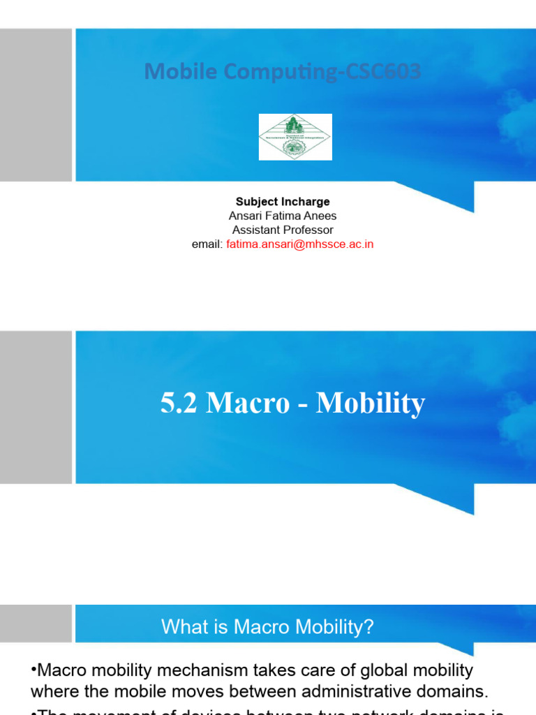 1. Fat Mobile IPv6 (FMIPv6) proposes mechanisms to reduce the