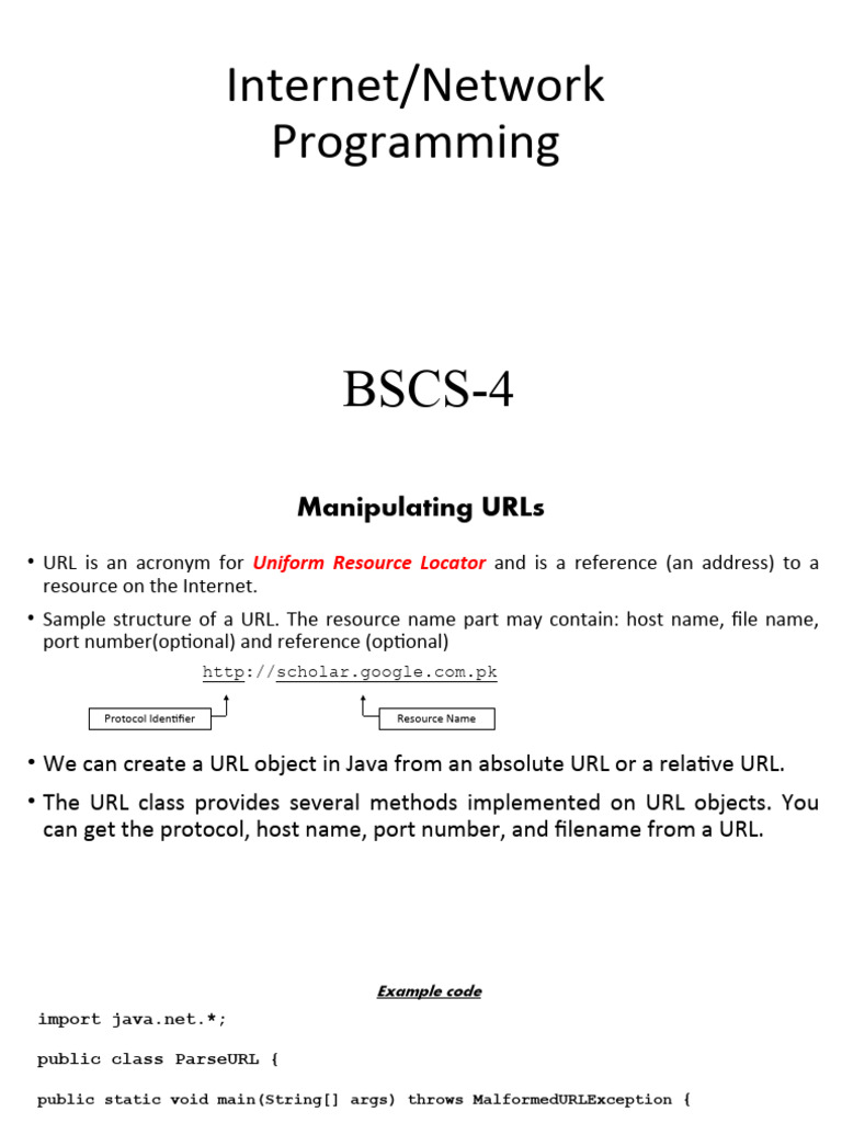 • We can create a URL object in Java from an absolute URL or a relative URL.