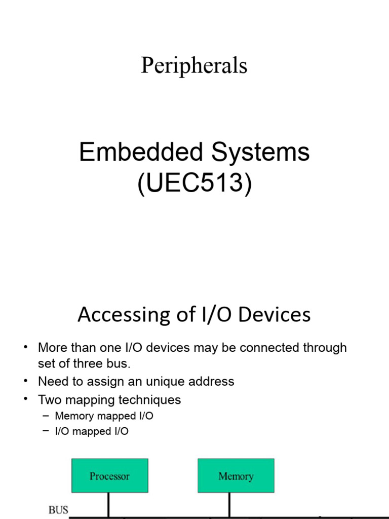 memory and I/O devices. I/O devices are assigned addresses within the regular