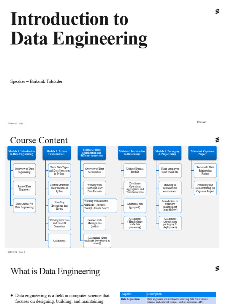 Module 1: Introduction Module 2: Python Module 4: Introduction Module 5: Packaging Module 6: Capstone