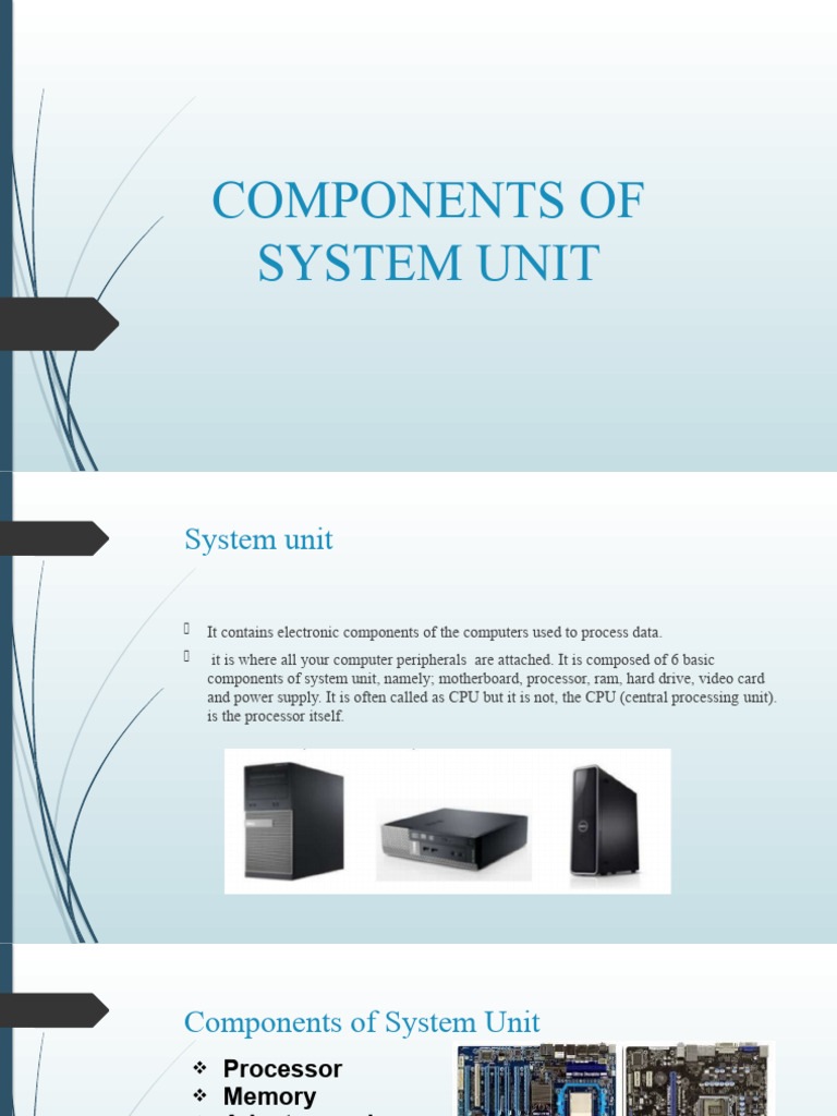 components of system unit, namely; motherboard, processor, ram, hard drive, video card