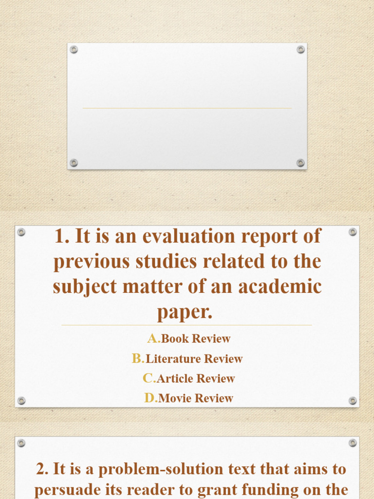 A.Book Review C. Research Report