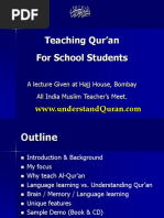 for Quran) If I want to teach you French and if I know that you speak something in French for 1 hour, I will say: Learn that first! A common sense approach Valid for every Muslim man, woman, old, and young, and even for a child