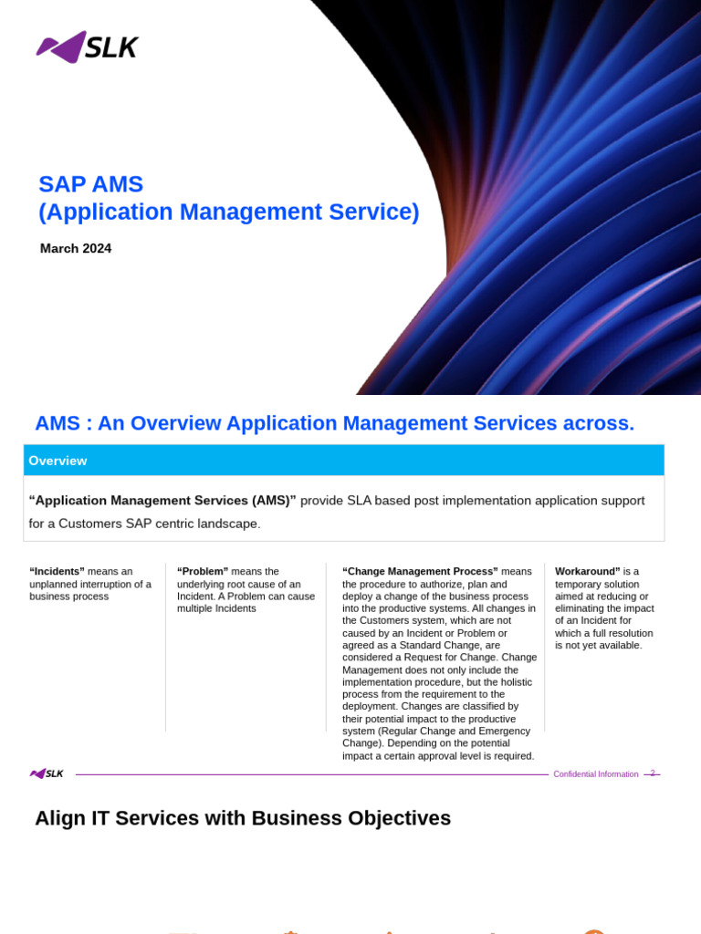 “Application Management Services (AMS)” provide SLA based post implementation application support