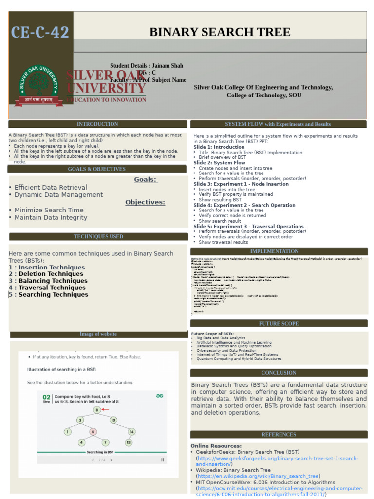 A Binary Search Tree (BST) is a data structure in which each node has at most Here is a simplified outline for a system flow with experiments and results