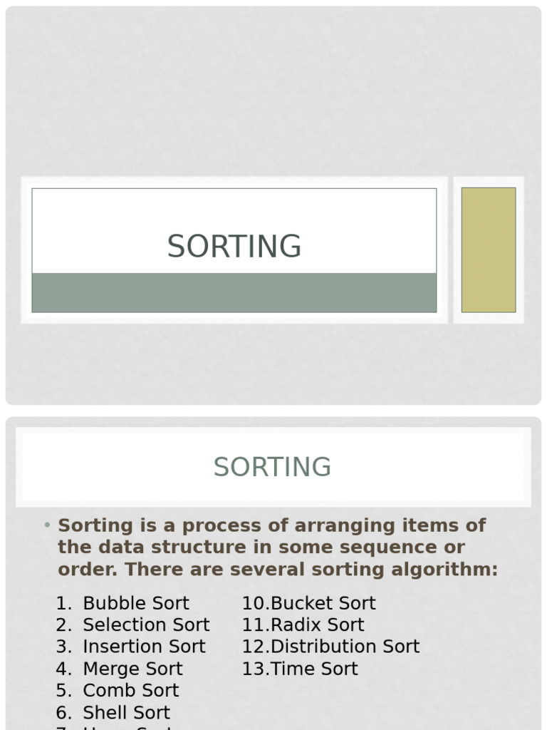 • Sorting is a process of arranging items of