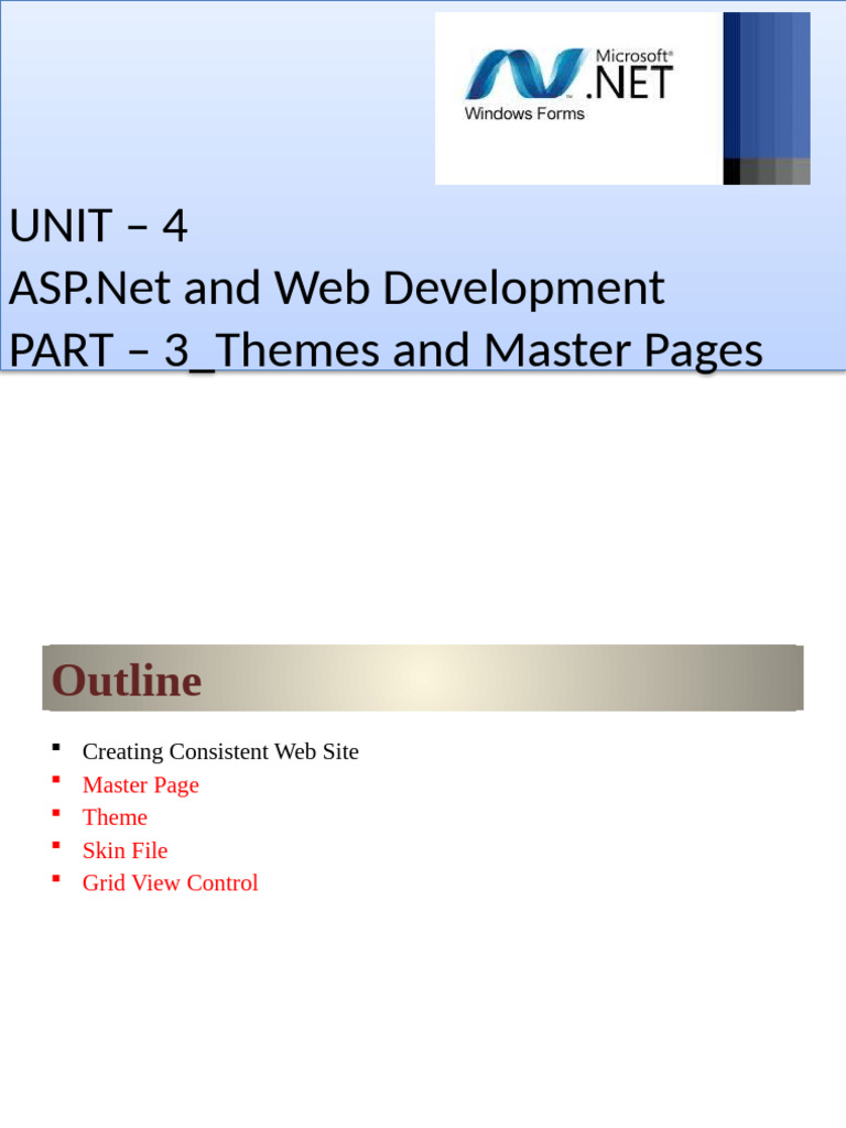 4. Explain master page and theme of ASP.NET. (Winter 2014)