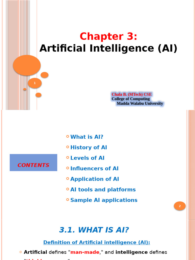 o So, we can define Artificial Intelligence (AI) as the branch of