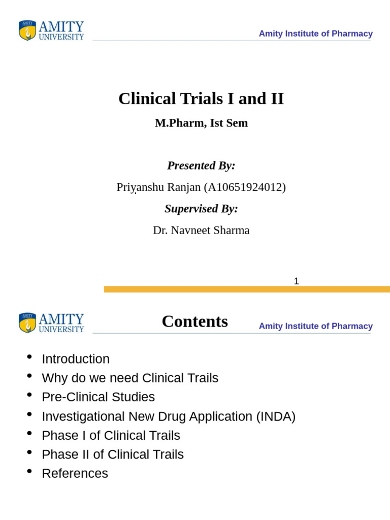 Phase I Clinical Trial Amity Institute of Pharmacy