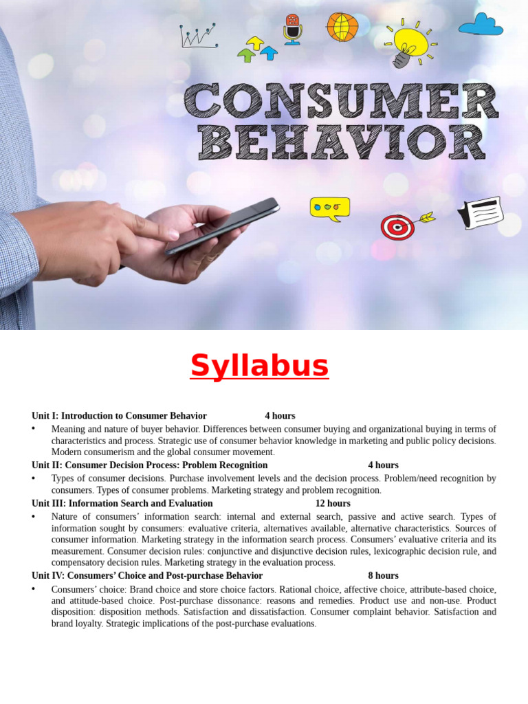 Unit IV: Consumers’ Choice and Post-purchase Behavior 8 hours