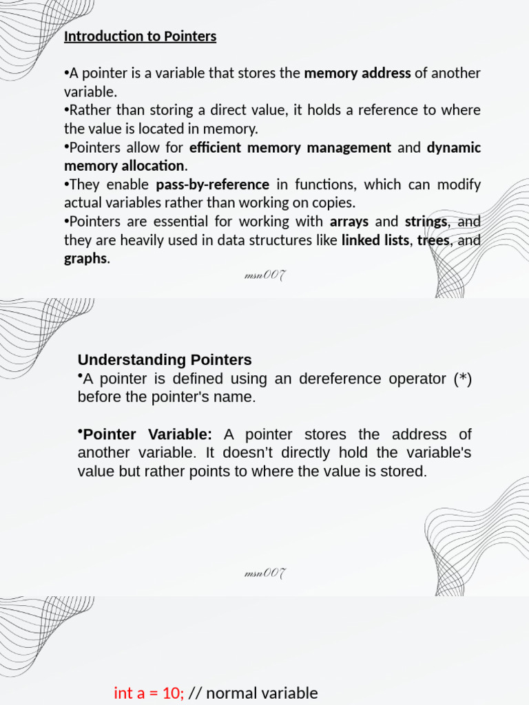 •Pointers allow for efficient memory management and dynamic